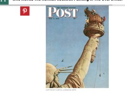 By Abigail Rockwell, jazz singer & granddaughter of Norman Rockwell – A painting by Norman Rockwell was moved in the Oval Office for the first meeting between President Obama and Mr. Trump so it would hang over Mr. Trump’s shoulder. In the painting the torch of the Statue of Liberty is being repaired by five men, one of whom is an African-American. All of them are precariously roped to her flame.
