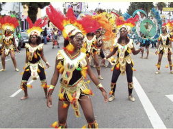 Traditional Caribbean carnivals are extremely popular around the world and held over several days. Carnivals are largely comprised of amazing gatherings of dazzling costumed masqueraders, who wear the same style or color as part of the same ‘band.’ Each ‘carnival band’ is organized by a ‘band leader.’ The leader chooses the theme and designs the attire or works with a designer and costume maker to manufacture them. The band leader then recruits revelers who purchase their designs and come out to ‘play’ in their band.