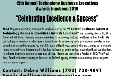 Washington, DC − MEA Magazine is hosting our 11th Annual Federal Business Forum & Technology Business Executives Awards Luncheon on Tuesday, May 31, 2016 at the Walter E. Washington Convention Center located at 801 Mount Vernon, Washington, DC from 9 am – 5pm. This event gives you the opportunity to meet with government and industry […]